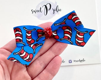 Cat In The Hat Inspired Hat Toss Print Ribbon Glitter Hair Etsy